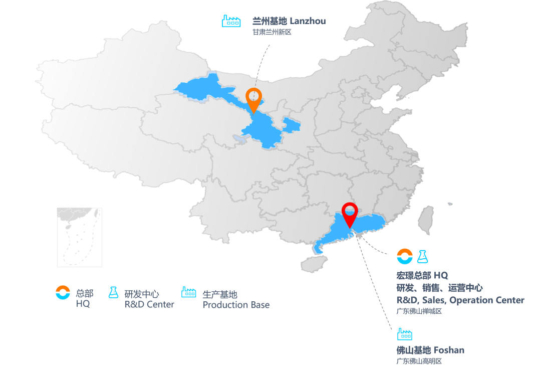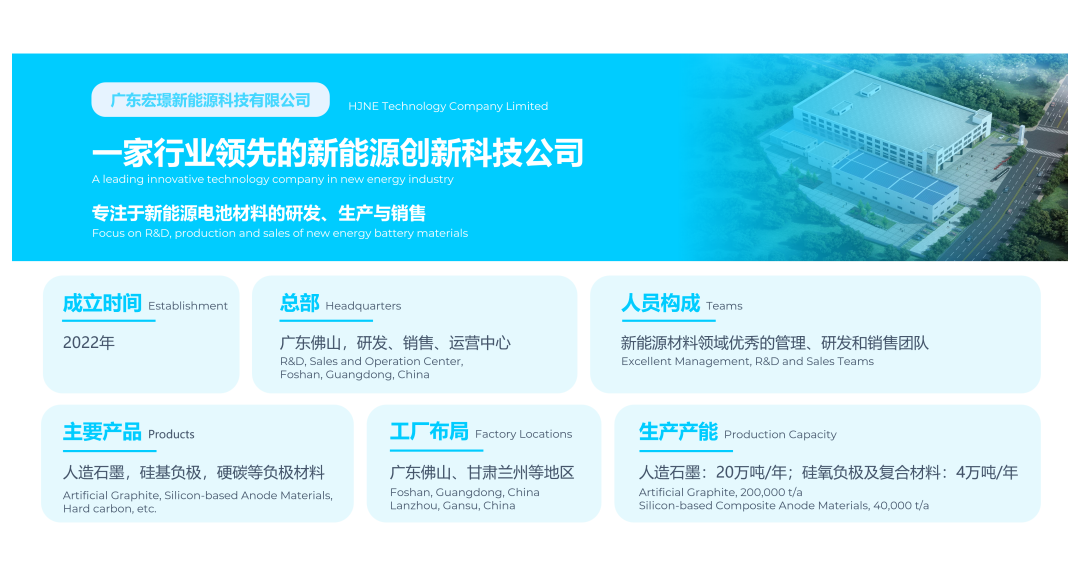 围绕锂离子电池负极材料这一主营业务,以广东佛山总部为发展依托,宏璟新能源形成了覆盖华南、中西部地区等新能源产业集群区域的产能布局。