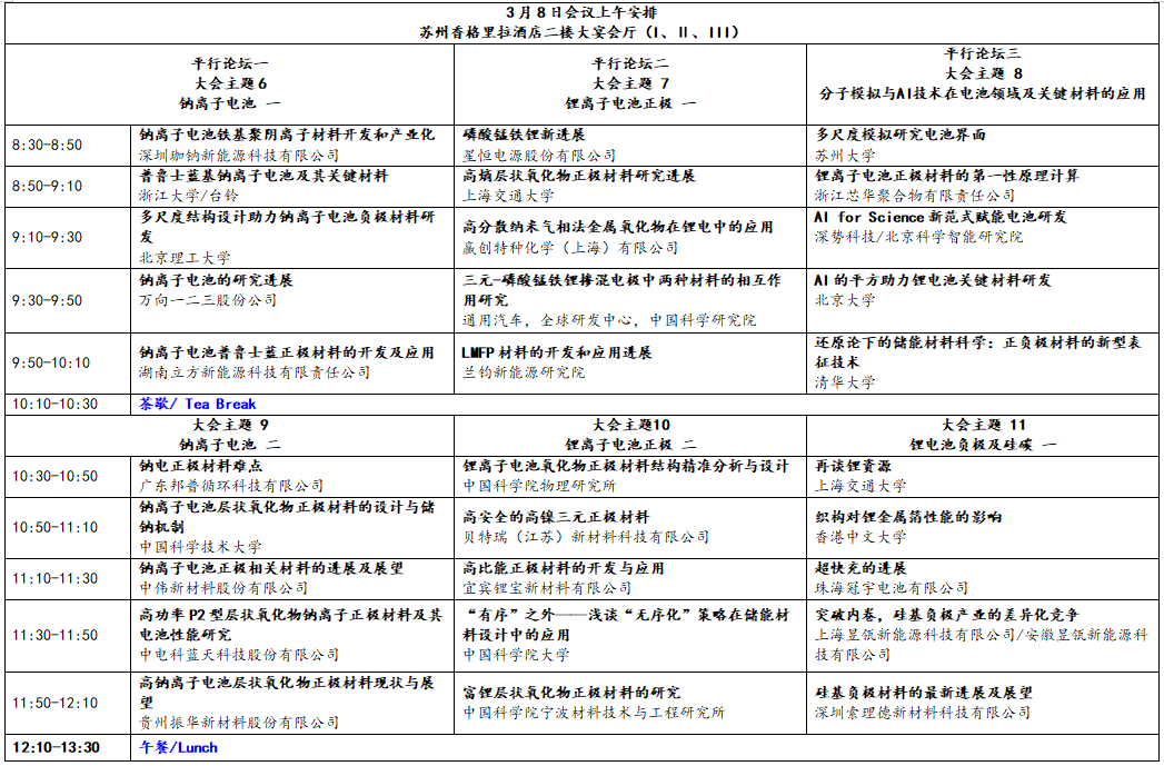 以大会演讲方式进行,会议安排两天(第一天大会,第二天分钠电平行论坛、正极平行论坛、负极平行论坛、先进表征、分子模拟与AI技术)