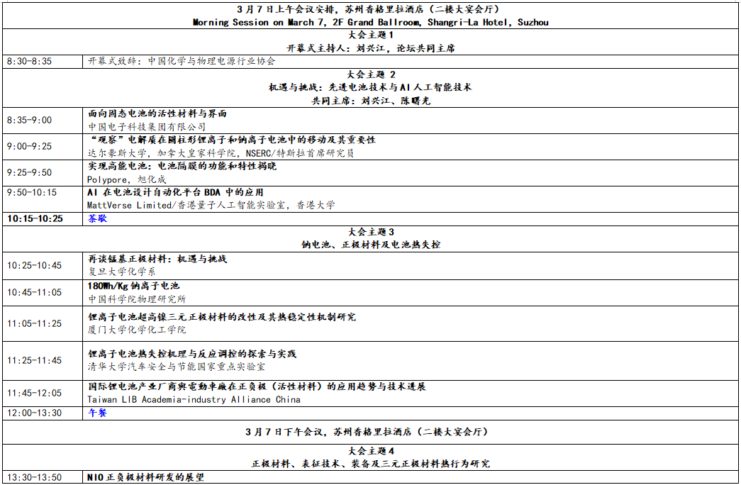 以大会演讲方式进行,会议安排两天(第一天大会,第二天分钠电平行论坛、正极平行论坛、负极平行论坛、先进表征、分子模拟与AI技术)