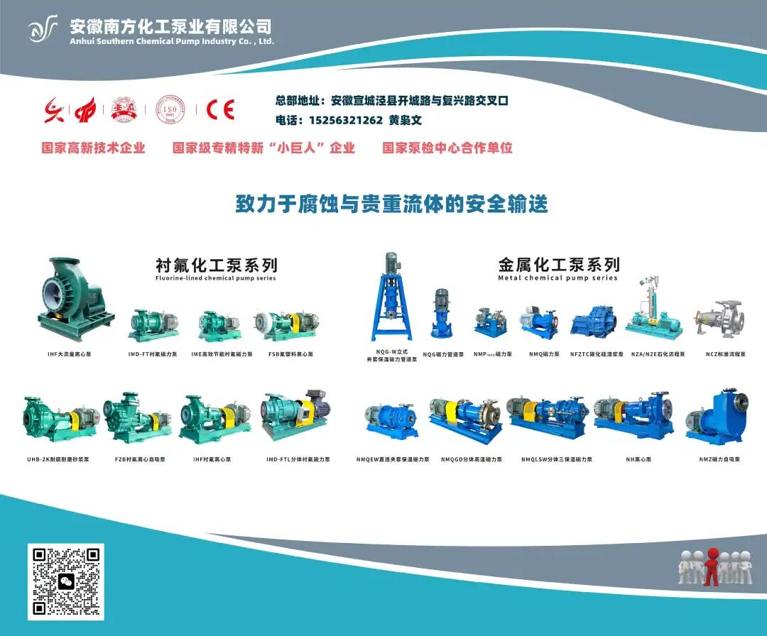 安徽南方化工泵业有限公司创建于1999年,是一家专业生产化工泵的国家高新技术企业和国家级专精特新“小巨人”企业,集研发、生产、销售、服务于一体。公司产品广泛应用于石油化工、煤化工、有色冶炼、新能源、医药、环保、钒矿锂矿等领域。